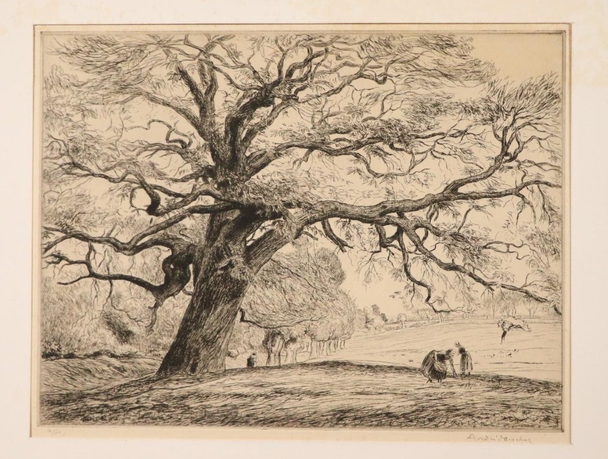 Descriptif : André DAUCHEZ (1870-1948) Le vieil arbre et les glaneuses en pays Bigouden Eau-forte, justifiée 4/60 en bas à gauche et contresignée en bas à droite 43×5 x 59,5 cm (feuille)