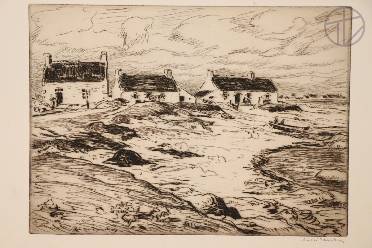 Descriptif : André DAUCHEZ (1870-1948) Maisons en bord de mer en Bretagne Eau-forte, contresignée en bas à droite 31,5 x 44,5 cm (feuille)