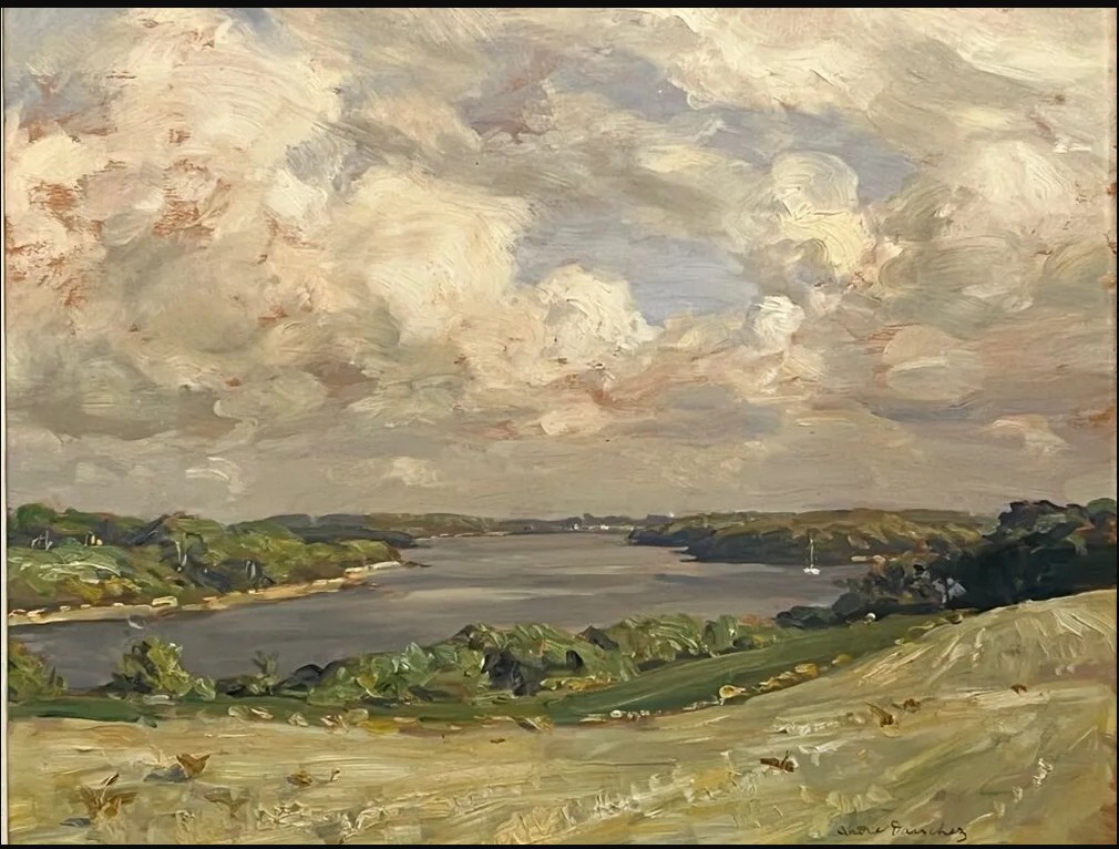 Vente du 26/02/2026 à 10h00, lot 434 : Cette étude ne figure pas dans le catalogue, mais porte au dos l’inscription L’Odet devant Beaujeu ; il existe une étude très proche de 1914 intitulée Vue de l’Odet à Kerouzien, mais avec quelques écarts ; Beaujeu étant l’autre nom de Kerouzien.