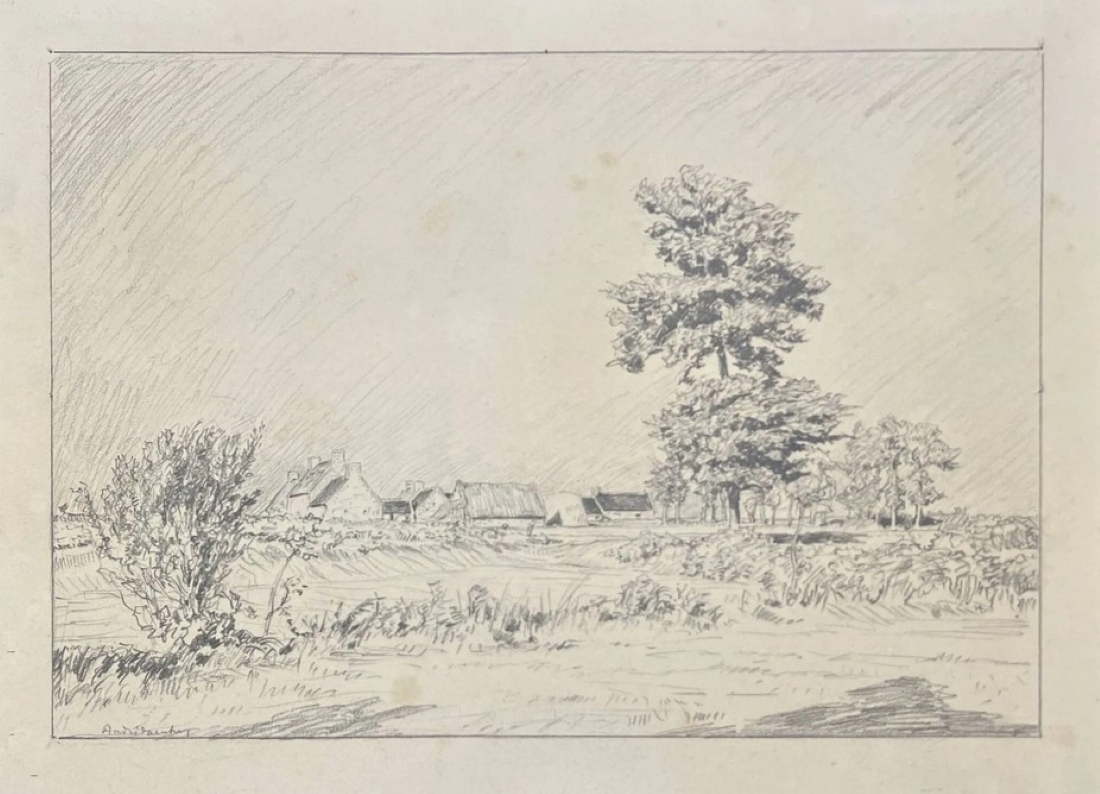 Descriptif : DAUCHEZ André (1870-1948) Paysage aux maisons, Mine de plomb sur papier, signé en bas à gauche rousseurs, légère insolation 28 x 38 cm